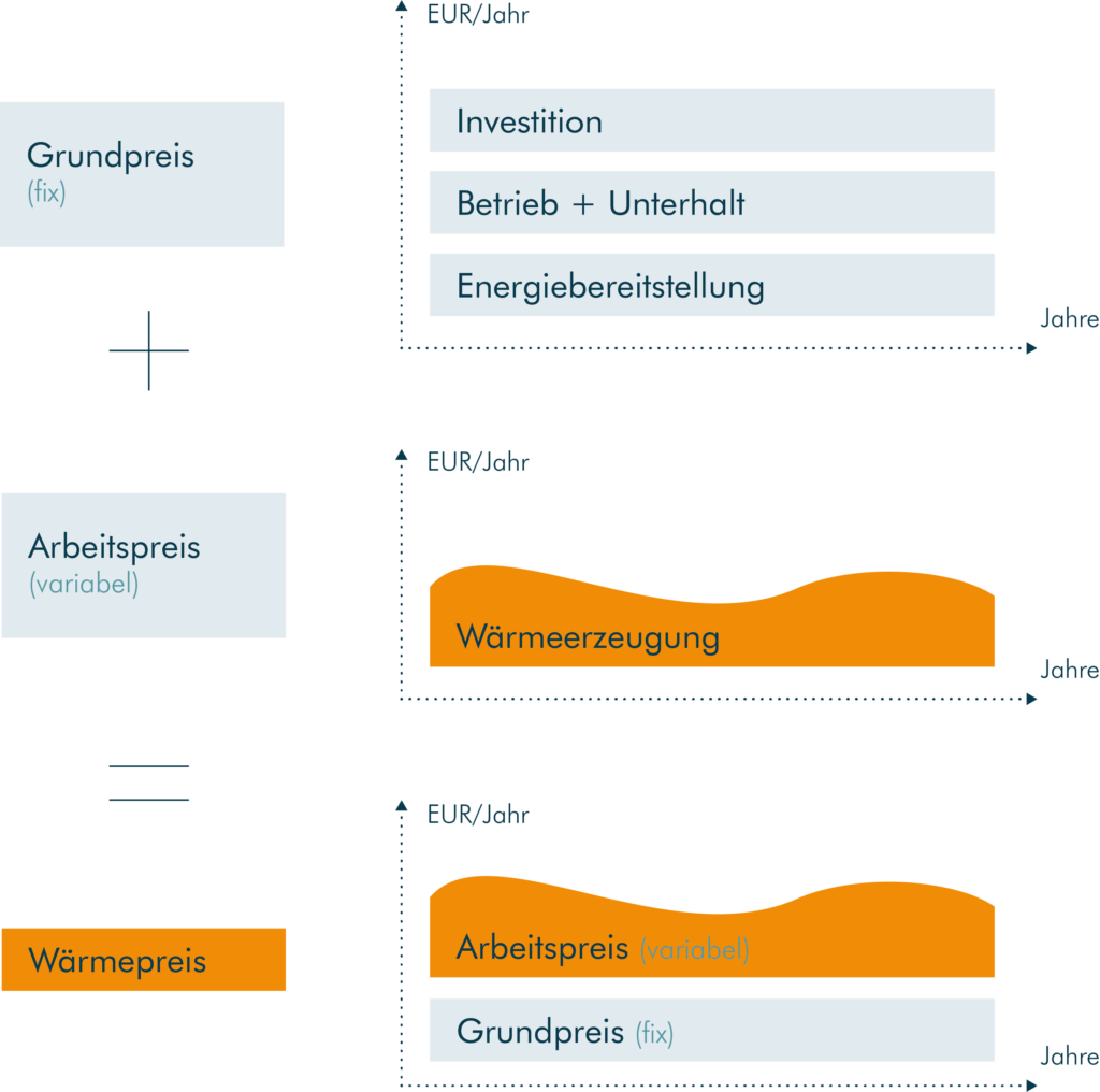 Unser ORIGINALWÄRMEPLUS-Angebot ist transparent und nachvollziehbar. Wir liefern Ihnen 15 Jahre lang komfortable Wärme und übergeben Ihnen dann die Heizungsanlage zur eigenen Nutzung. Ein überschaubarer monatlicher Preis gibt Ihnen die Flexibilität, den Einbau einer neuen Heizungsanlage auch ohne eigene Rücklagen zu finanzieren. Er setzt sich aus einem verbrauchsunabhängigen Grundpreis und einem Arbeitspreis für den Wärmeverbruach zusammen.