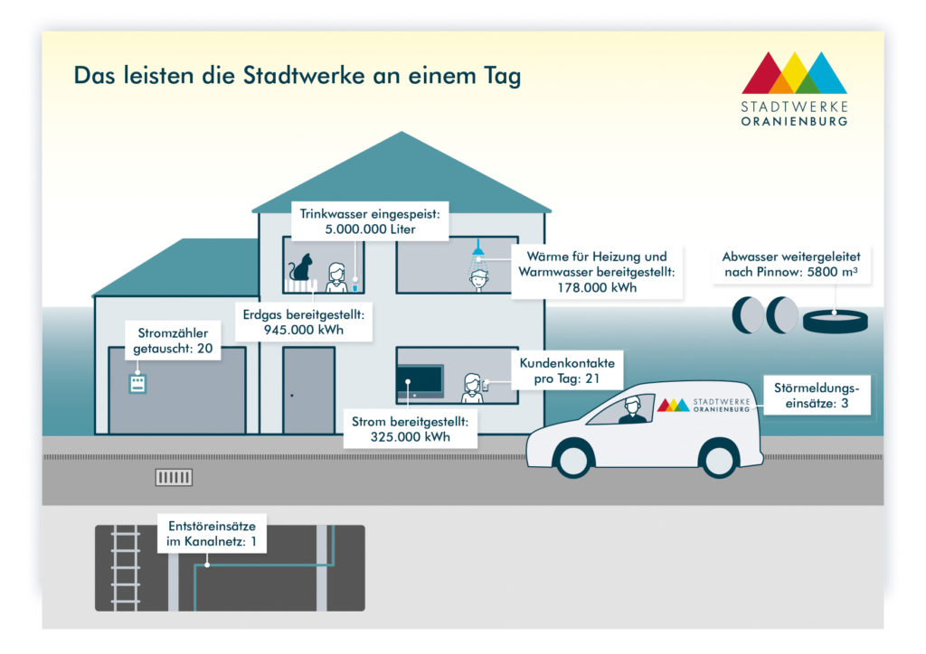 Auf eine Konstante kann sich jeder Oranienburger verlassen: die Versorgung mit Strom, Erdgas, Trinkwasser, Wärme und die Entsorgung von Abwasser. Gerade in Situationen wie sie dieses Jahr herrschen, steigt der Anspruch an die Stadtwerke als Betreiber kritischer Infrastrukturen. Die Stadtwerke Oranienburg nehmen diese Verantwortung, für die Stadt und seine Einwohner, wahr – 365 Tage im Jahr, 24 Stunden am Tag.